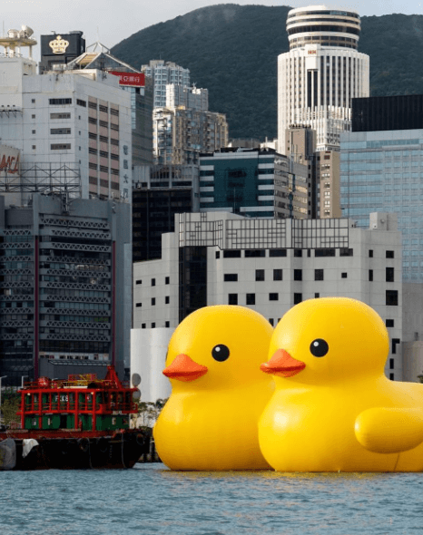 홍콩에 쌍둥이 러버덕이 설치되었을 때, DDT스토어를 통해 팔던 한정 상품.