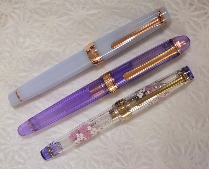 비교를 위해 세일러사의 골드 제품과 로즈골드 제품 사이에 끼워넣어봤다.