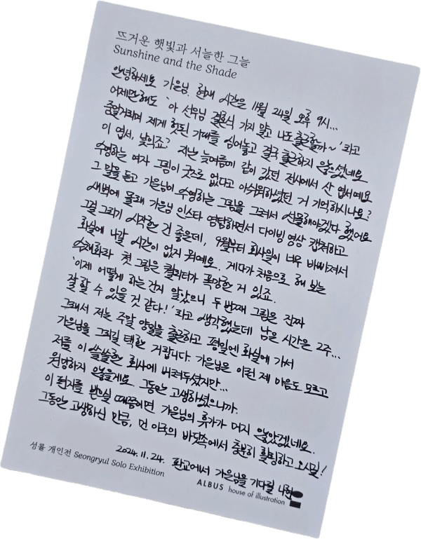 그림과 함께 선물...할 예정이었으나, 화방에 갈 시간도 없고 그림도 마음에 안 들어서 무한히 미뤄지는 중