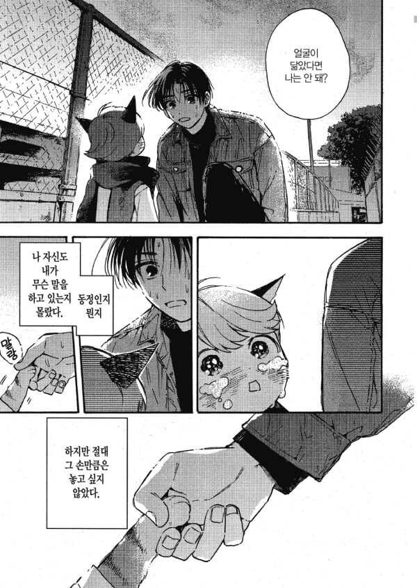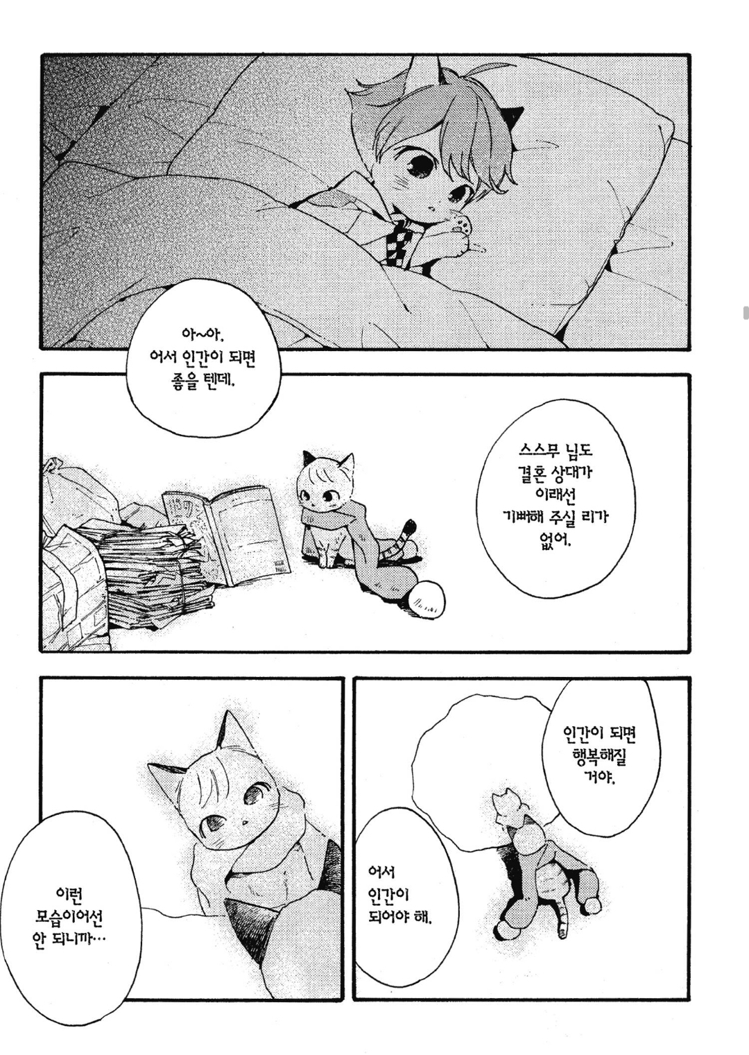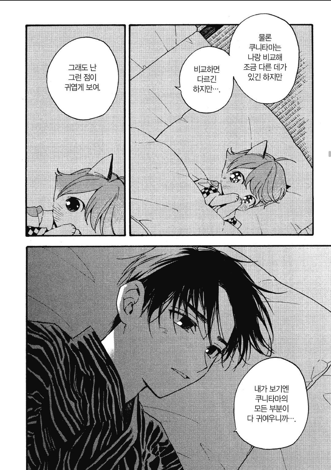 작품이나 작가 후기는 보고 납득했는데, "꼬추가달린건지짬지가달린건지도모를 고양이새끼한테 키스하고 결혼이지랄하는게토나온다고 안 보고 싶다고"같은 후기를 보면 오히려 이쪽이 더 거부감이 든다. 모든 사랑을 섹슈얼리즘 형태로 해석하고 상상할 필요가 있나?